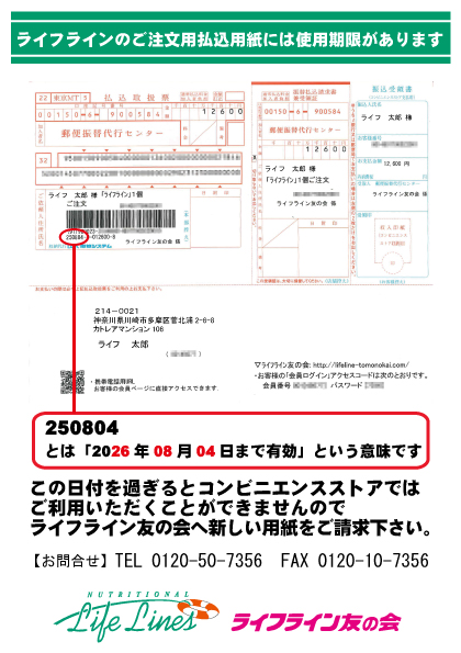 ご注文用払込用紙には期限があります